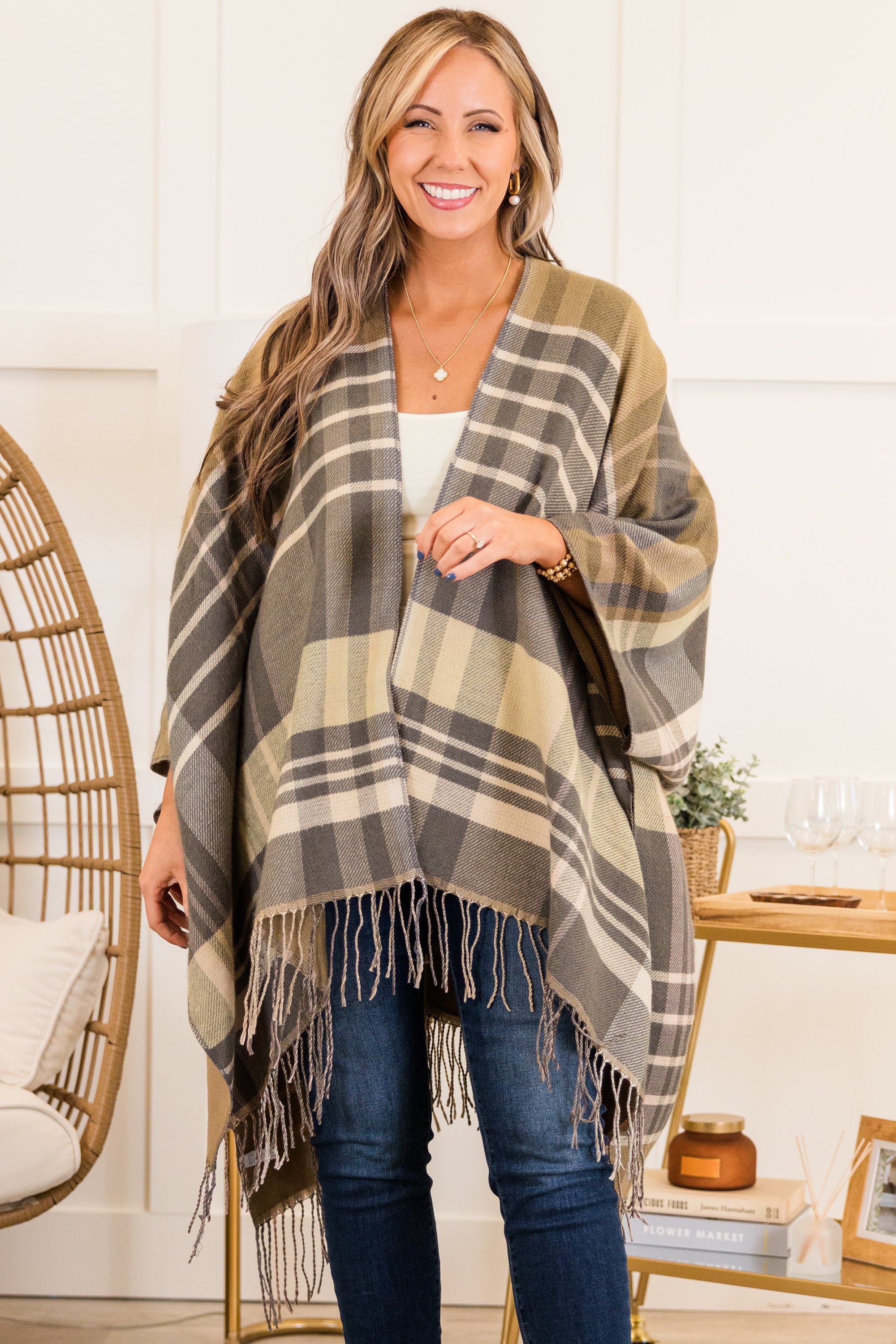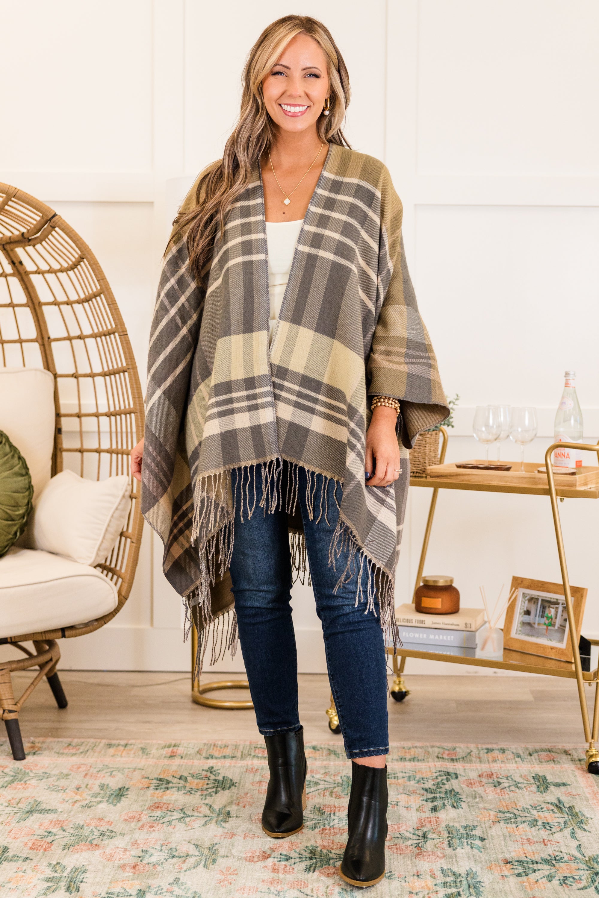 Woolen Whisper Poncho, Gray