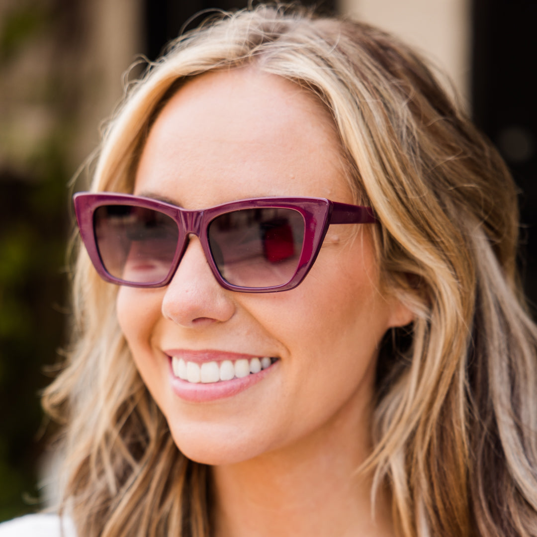 Enhance your style with these sunglasses! These burgundy, cat-eye shades are the perfect finishing touch to any outfit! Step out in confidence, knowing you can't be outshined!